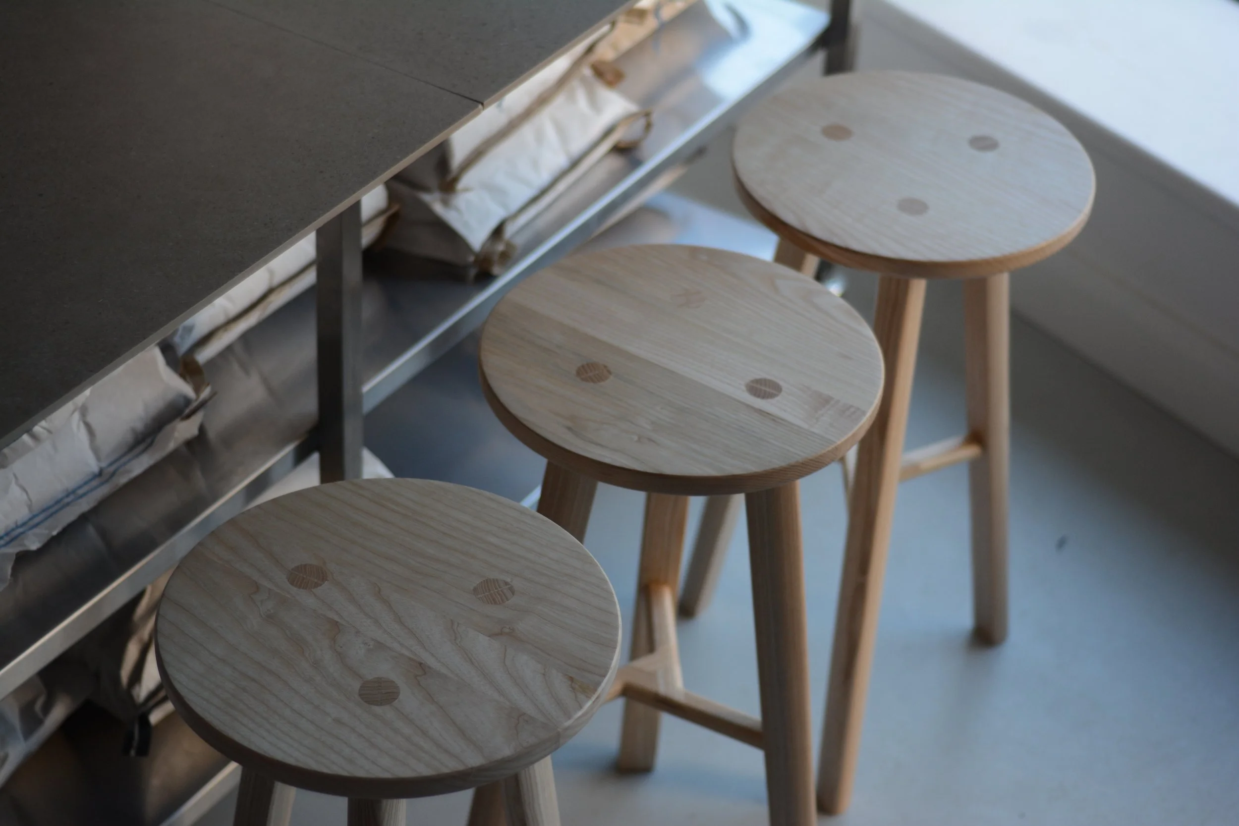 The Poole stool is the first in a range of products designed by me to be used in a wide variety of settings. Made of ash and held together solely with traditional joinery (and some glue for good measure), the slender profile of the Poole stool fits well in many domestic spaces.